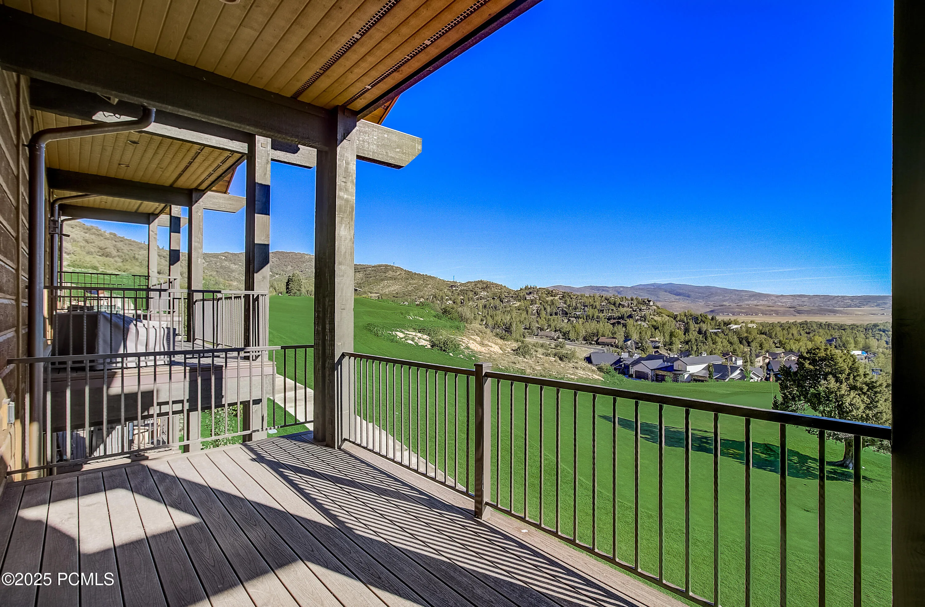Nestled in the highly desirable Juniper Landing development in the Canyons Village, this exquisite 4 bedroom, 5 bathroom townhouse offers an exceptional combination of luxury and location. Situated in a prime location within the Juniper development, this timeless contemporary residence, designed to comfortably host up to 10 guests, overlooks the 6th fairway. It presents breathtaking, panoramic down valley views and views of the Uinta mountains. A short walk to the Frostwood Gondola provides easy ski access, making this mountain getaway perfect for those seeking both convenience and comfort. Enjoy an open living room, dining room, and kitchen floor plan with high ceilings, stunning hardwood floors throughout the first floor, all public areas and the master bedroom. Expansive windows adorned with custom window shades (electric in the main living area) flood the space with natural light while providing privacy and light control. The living room, featuring a cozy corner fireplace, is perfect for relaxing after a day on the slopes. It opens to a covered deck ideal for savoring breathtaking sunrises, alfresco dining, and soaking in the year-round scenery. The gourmet chef’s kitchen, equipped with premium Thermador appliances, custom cabinetry, quartz countertops, a built-in under-mount wine fridge, and a large island with seating for four, is perfect for casual dining, entertaining, and building lasting memories with family and friends. Enhanced with a premium whole house water softener system and purified water at the kitchen sink, this culinary space ensures the highest quality water for cooking and drinking. Three of the four bedrooms are designed as private retreats, each with en-suite bathrooms featuring elegant Graff plumbing fixtures and sophisticated toe kick lighting, plus ample walk-in closet space. The upper-level master suite features luxurious heated floors, elegant hardwood throughout, and a spa-like bathroom with double vanities, a walk-in st