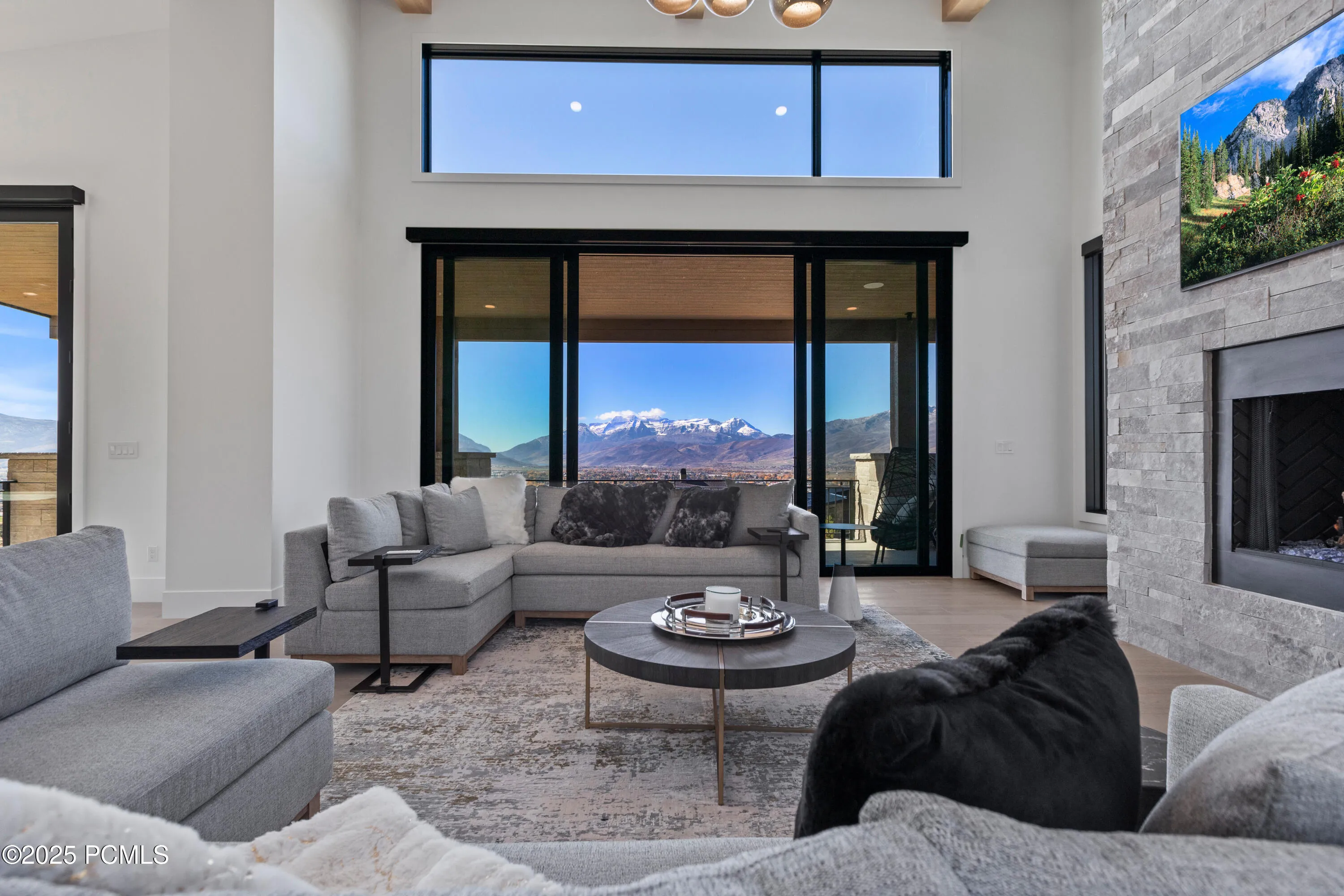 Discover your dream home in the prestigious Red Ledges community, where modern elegance meets the breathtaking beauty of Utah’s landscape. This stunning, brand-new home is custom-designed and turnkey, offering a seamless ”move-in ready” experience. Situated on a magnificent lot, the home boasts panoramic views from every room, including unobstructed vistas of majestic Mt. Timpanogos. The open-concept living room, with soaring ceilings, oversized windows, and a grand fireplace, serves as the heart of the home. Expansive decks on all three levels blur the line between indoor and outdoor living, with the main deck featuring an outdoor fireplace perfect for cozy evenings. The chef’s kitchen is a culinary masterpiece, equipped with top-tier appliances, double dishwashers, double ovens, a wine cooler, built-in steamer, heated pantry floors, and a butler’s pantry with a convenient pass-through window. The main-level primary suite is a peaceful retreat, complete with vaulted ceilings, a spa-like bathroom with heated floors, and a spacious walk-in closet. A beautifully tiled mudroom connects to the three-car garage, complemented by a heated driveway, EV hook-up, and a powerful backup generator for ultimate convenience. The lower level is perfect for entertaining, featuring a large family room with a wet bar, a state-of-the-art media room, and a custom bunk suite. Upstairs, a private ”guest suite” includes an expansive office and en-suite bedroom, ideal for visitors or remote work. This home is fully wired for modern living, with high-speed internet, advanced security, Hunter Douglas blinds, two HVAC systems, and designer furniture. Skip the wait and expense of building–this home offers luxury, comfort, and unbeatable views in Red Ledges. Make it yours today!