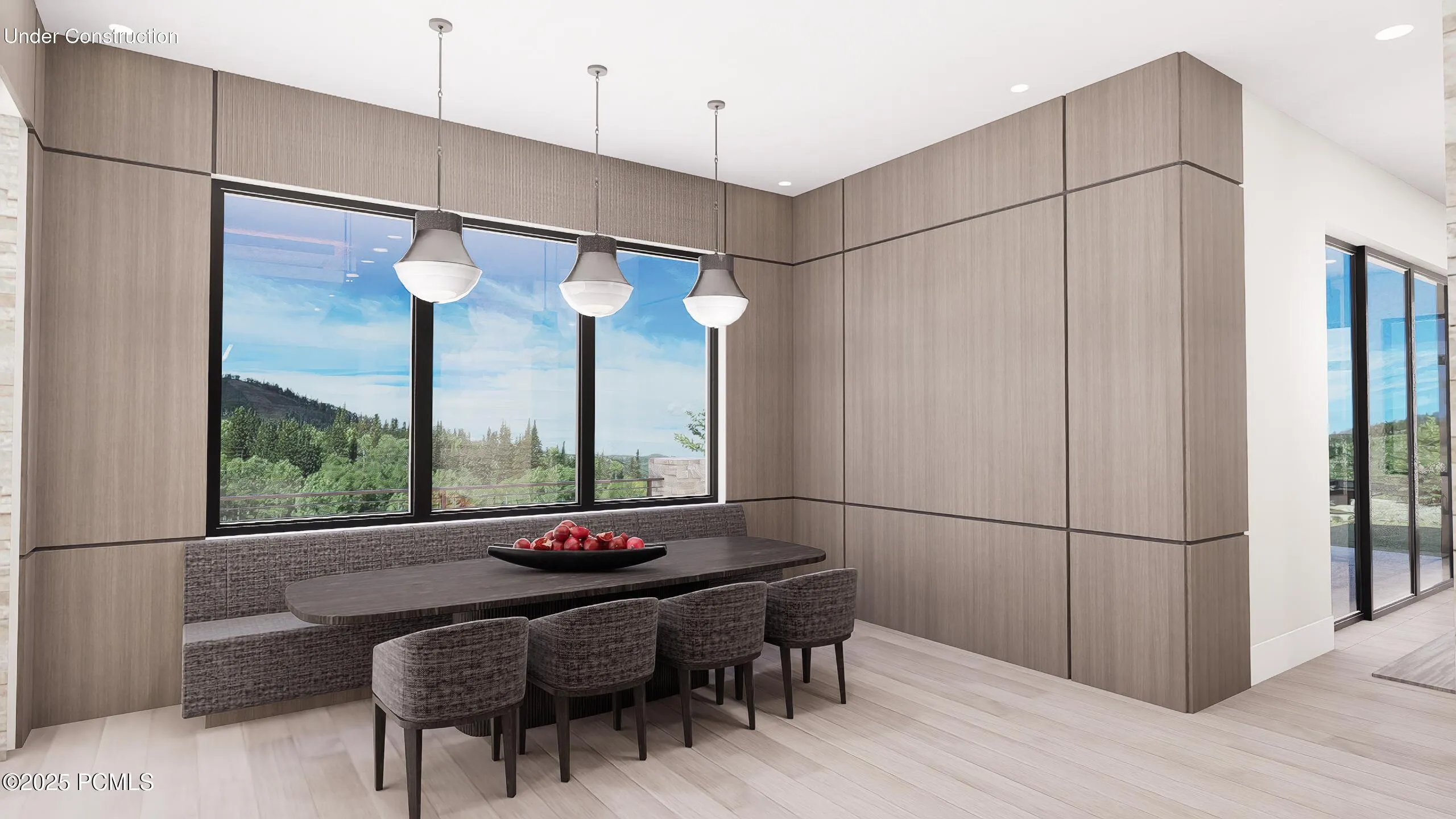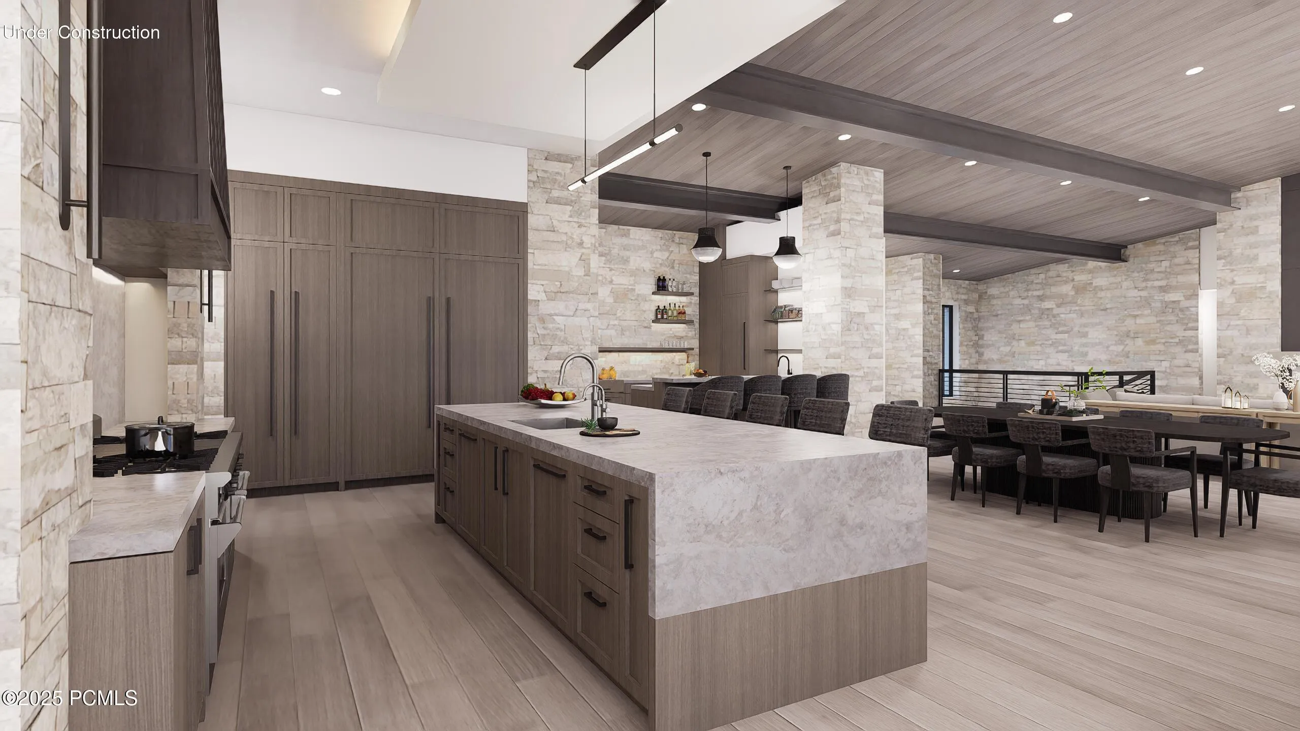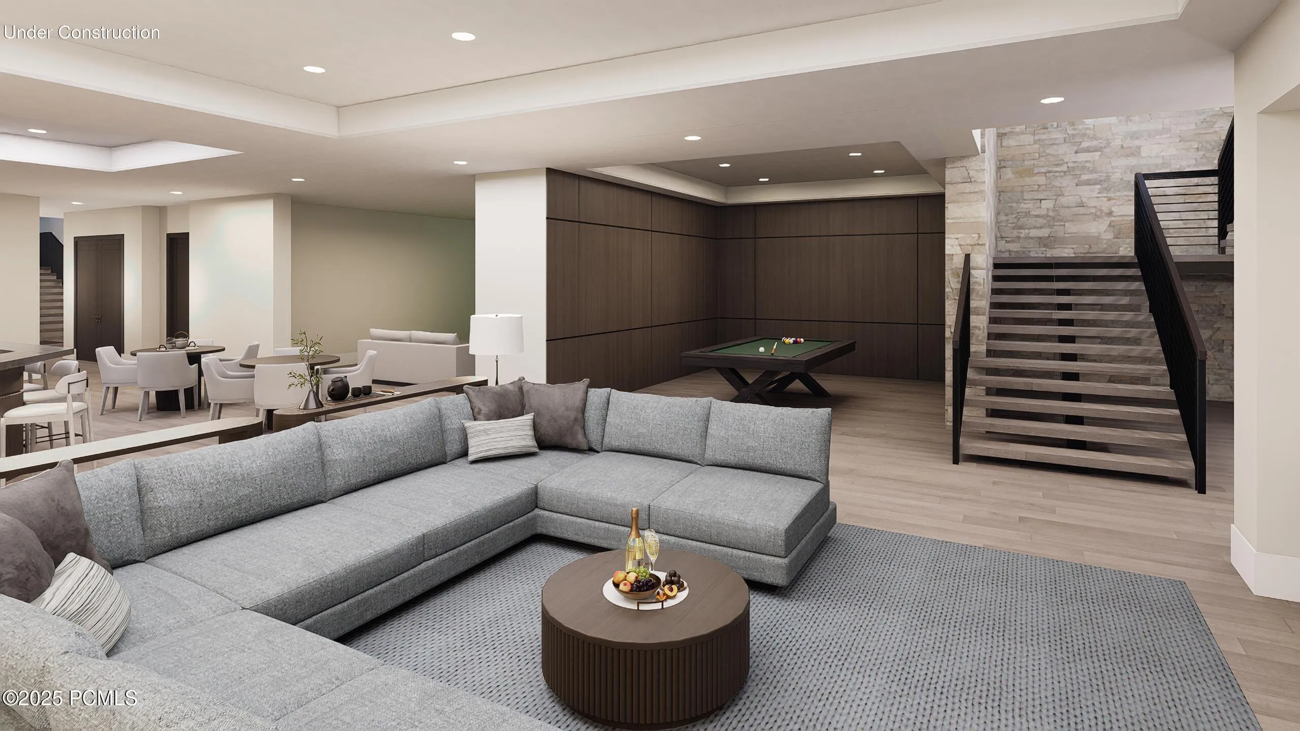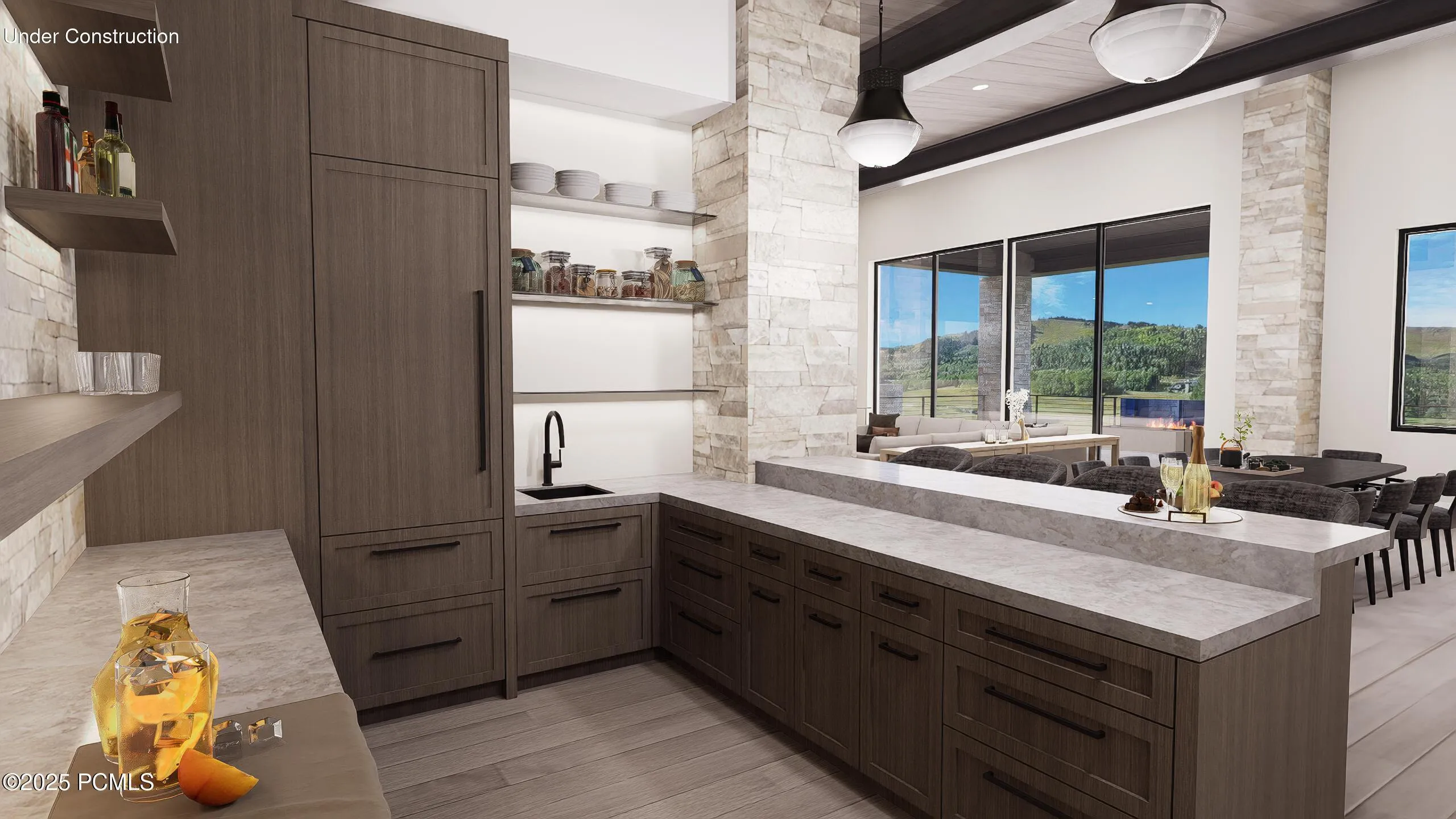 This under-construction estate occupies one of the premier lots in Phase 5 of The Colony at White Pine, crafted by the community’s most experienced development team. The homesite gently slopes from White Canyon Road to a masterfully designed residence that sits at the edge of a meadow, offering unobstructed views of West Monitor, No Name Bowl, and the Park City Ridgeline. Spanning over 15,000 square feet, the home is thoughtfully designed with the primary living spaces and owner’s suite on the main level. The floor plan balances scale and intimacy–perfect for entertaining large groups yet equally comfortable for just the owners in residence.The main level features a dramatic great room with soaring wood ceilings, opening onto a spacious patio overlooking the meadow, Phase 5 ponds, and surrounding mountains. Anchoring this level are the main living area, chef’s kitchen, bar, wine room, hearth room, ski room, primary suite, and two additional bedrooms–one designed for use as an office.The lower level is dedicated to recreation and guest accommodations, highlighted by a large secondary living area with a full bar, a Full Swing Multisport golf simulator, billiards, and a spa and wellness retreat complete with gym, sauna, steam room, and treatment area. Five additional bedroom suites are located on this level, including two bunk rooms designed for hosting family and friends.Finishes throughout the home have been carefully curated to reflect elegance and harmony with the mountain setting. Design details include Montpellier oak distressed hardwood floors, rift oak cabinetry, natural stone accents inside and out, a bronze metal roof with cedar siding, and designer fixtures and hardware. A complete furniture package is included, offering a true turnkey experience.