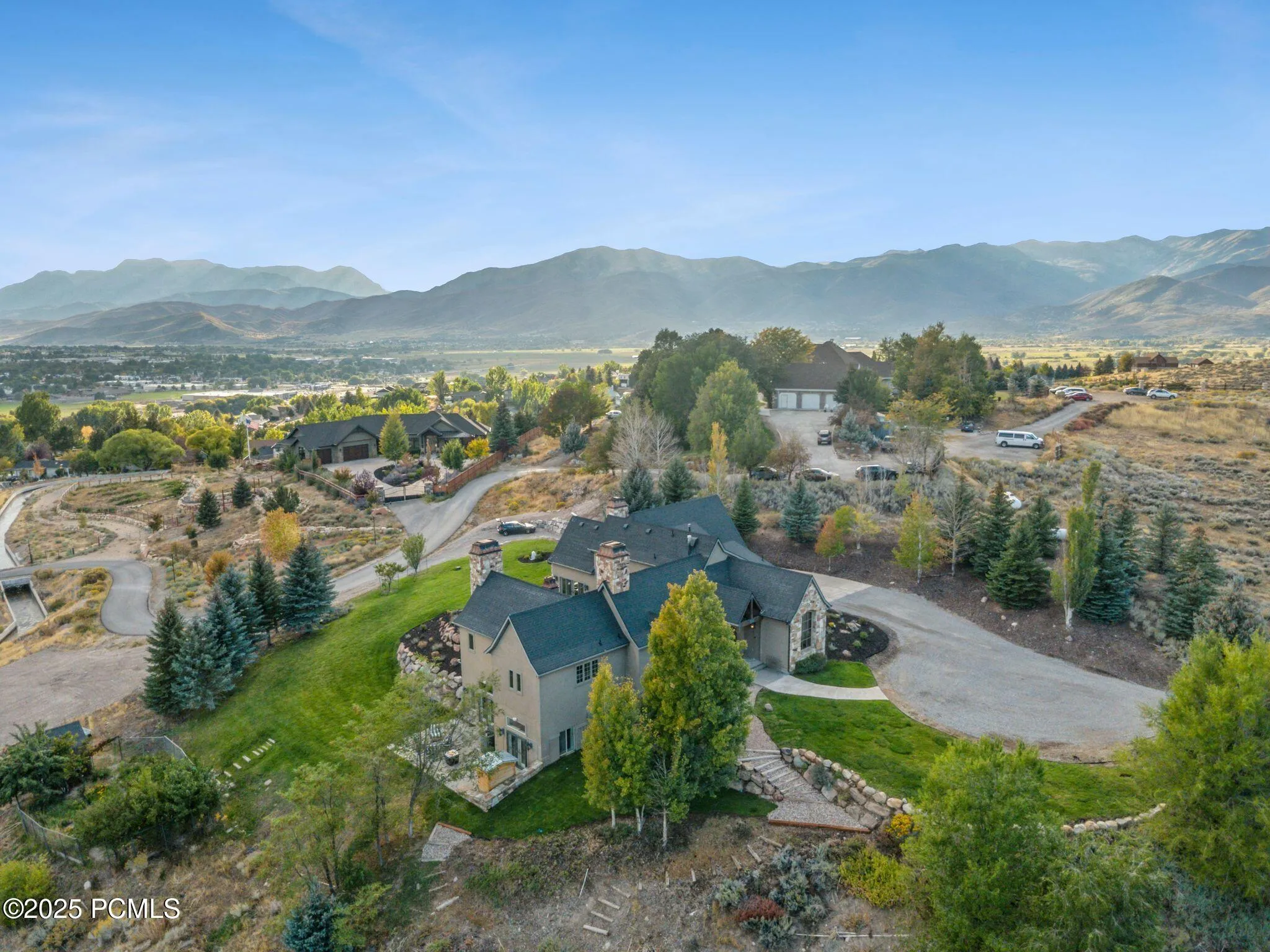 Perched atop a private 5-acre estate, this exquisite custom home offers a rare blend of timeless elegance, modern luxury, and breathtaking panoramic views of Mount Timpanogos, Deer Creek Reservoir, and the entire Heber Valley. With the explosive growth of the new East Village at Deer Valley and the arrival of world-class destinations like the Four Seasons, Grand Hyatt, Ameyalli, and Marriott’s revitalization of Homestead Crater, this property is perfectly positioned to enjoy the best of Utah’s mountain lifestyle. This custom-designed residence features four bedrooms and expansive living spaces ideal for both intimate gatherings and grand entertaining. The gourmet kitchen is a chef’s dream, outfitted with Wolf and Sub-Zero appliances, a double oven, gas range, and a butler’s pantry/laundry area for seamless hosting. Vaulted ceilings, Italian marble, rich hardwood floors, and 6 stunning fireplaces create a warm and inviting ambiance throughout. The primary suite is a private retreat with a spa-inspired bath, heated marble floors, a generous walk-in closet, and direct access to a serene courtyard patio with its own fireplace. The walk-out lower level offers 11-foot ceilings and includes a theater room with tiered seating, game room, wine cellar, bunk room, and additional bedrooms and bathrooms–perfect for guests or multi-generational living. Outdoor living is elevated with multiple patios and balconies that frame the stunning natural surroundings. Whether you’re enjoying a quiet morning coffee, relaxing in the outdoor sauna, or hosting a sunset soiree, the views are simply unforgettable. Located just minutes from the new East Village Gondola, four public golf courses, world-class fly-fishing, and three pristine reservoirs, this estate offers unparalleled access to recreation and relaxation. You’ve found your one-of-a-kind mountain retreat to enjoy the upcoming winter season.