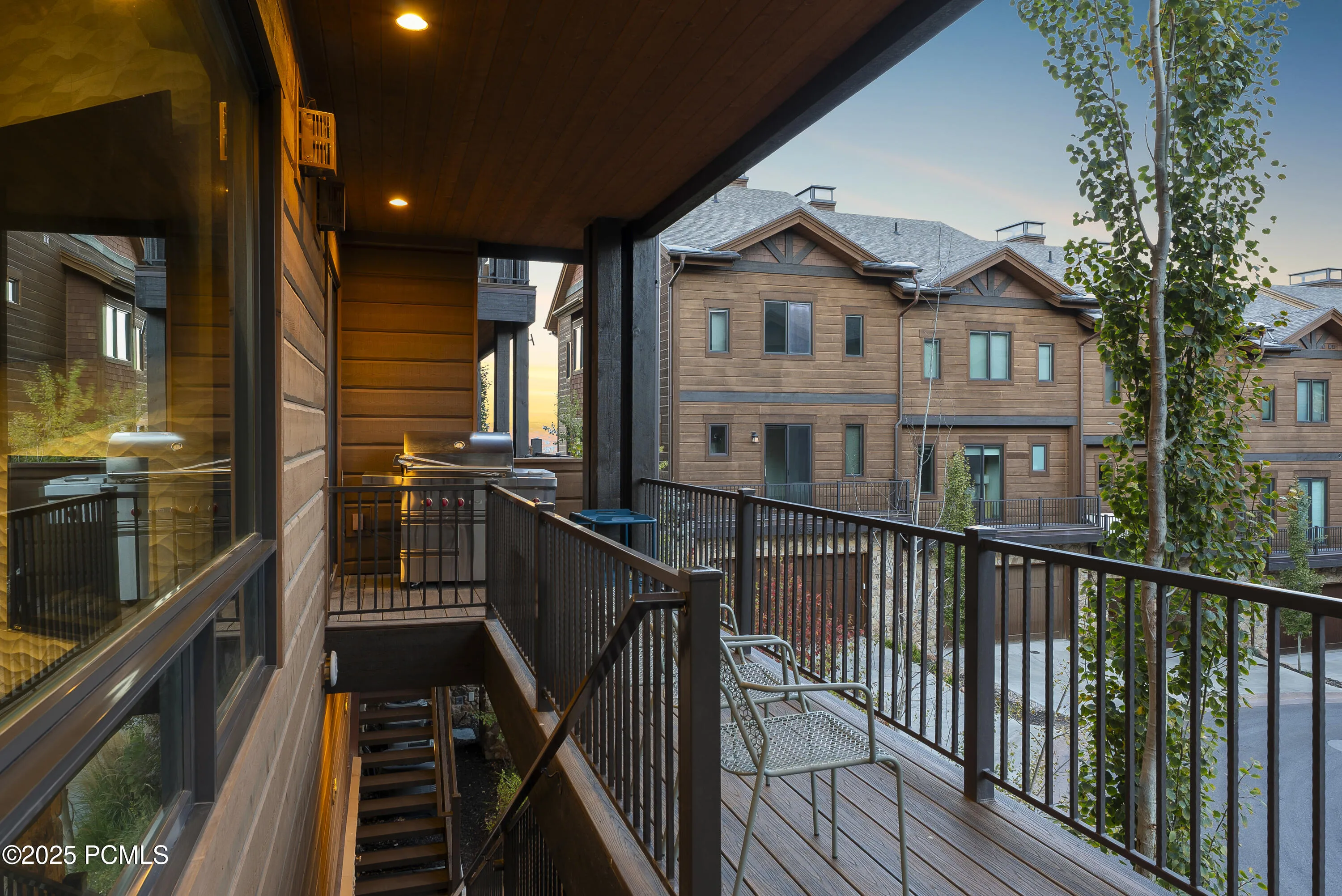 This stunning end-unit 4-bedroom townhome perfectly blends luxury, comfort, and premier ski access via the Frostwood Gondola. Set along the 9th and 10th fairways of the Canyons Golf Course, the home offers breathtaking views of White Pine Canyon from multiple oversized decks across two levels.Expansive windows and soaring ceilings flood the home with natural light, highlighting its refined mountain contemporary design. The open-concept main level features a chef’s kitchen with Thermador appliances, waterfall-edge countertops, and sleek cabinetry, flowing seamlessly into a living room anchored by a modern fireplace. A second living area provides flexibility for a media room, game space, or casual lounge. The main-level primary suite offers a private sanctuary with its own fireplace, deck access, and a spa-inspired ensuite featuring a soaking tub, dual vanities, warming towel rack and a walk-in shower. On the second level, three additional bedrooms include one with a private ensuite and another featuring expansive windows on two sides that showcase stunning mountain-top views. Two of the bedrooms share a private oversized balcony, and all bathrooms are beautifully designed with contemporary fixtures, quartz countertops, sleek cabinetry, and double vanities, offering a sophisticated and luxurious experience. A custom bunk room and additional flex space provide comfort and versatility for guests. Automated blackout blinds in all the bedrooms enhances privacy and comfort. Residents enjoy access to Juniper Landing’s premium amenities, including a 25-yard heated saltwater pool, hot tub, dry sauna, steam shower, and fitness center. Separate membership available to purchase at the Waldorf Astoria, granting access to world-class amenities including ski valet, two-car valet parking, a state-of-the-art fitness center, pool, hot tubs, steam room, and exclusive discounts at the spa and on-site restaurants.