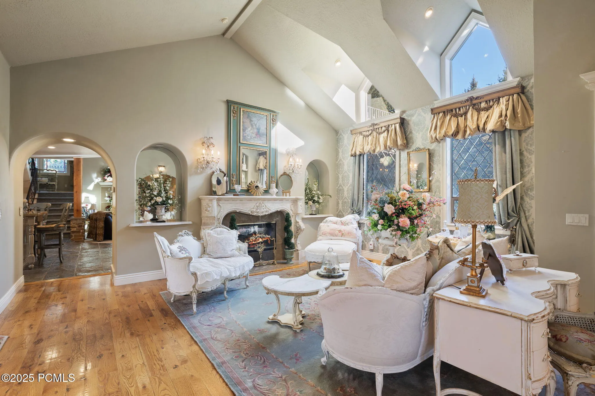 Tucked away behind a private gate at the end of Cottonwood Cove Lane, this exquisite 7,400 sq ft French Country estate offers unmatched privacy and timeless charm. Located in a gated community on a private road, this home sits on nearly 1.3 lush acres bordered by Little Cottonwood Creek and surrounded by 150 mature pine trees. Inside, enjoy stunning views from every window, vintage chandeliers, hand-leaded glass, and antique French doors that add warmth and authenticity. The elegant great room is filled with natural light, creating a seamless connection to the outdoors. Property includes a 3-bed, 2-bath guest cottage, saltwater pool, and a detached 30’x40′ garage. A truly secluded and breathtaking retreat blending old-world craftsmanship with modern luxury. Square footage figures are provided as a courtesy estimate only and were obtained from County Records . Buyer is advised to obtain an independent measurement.