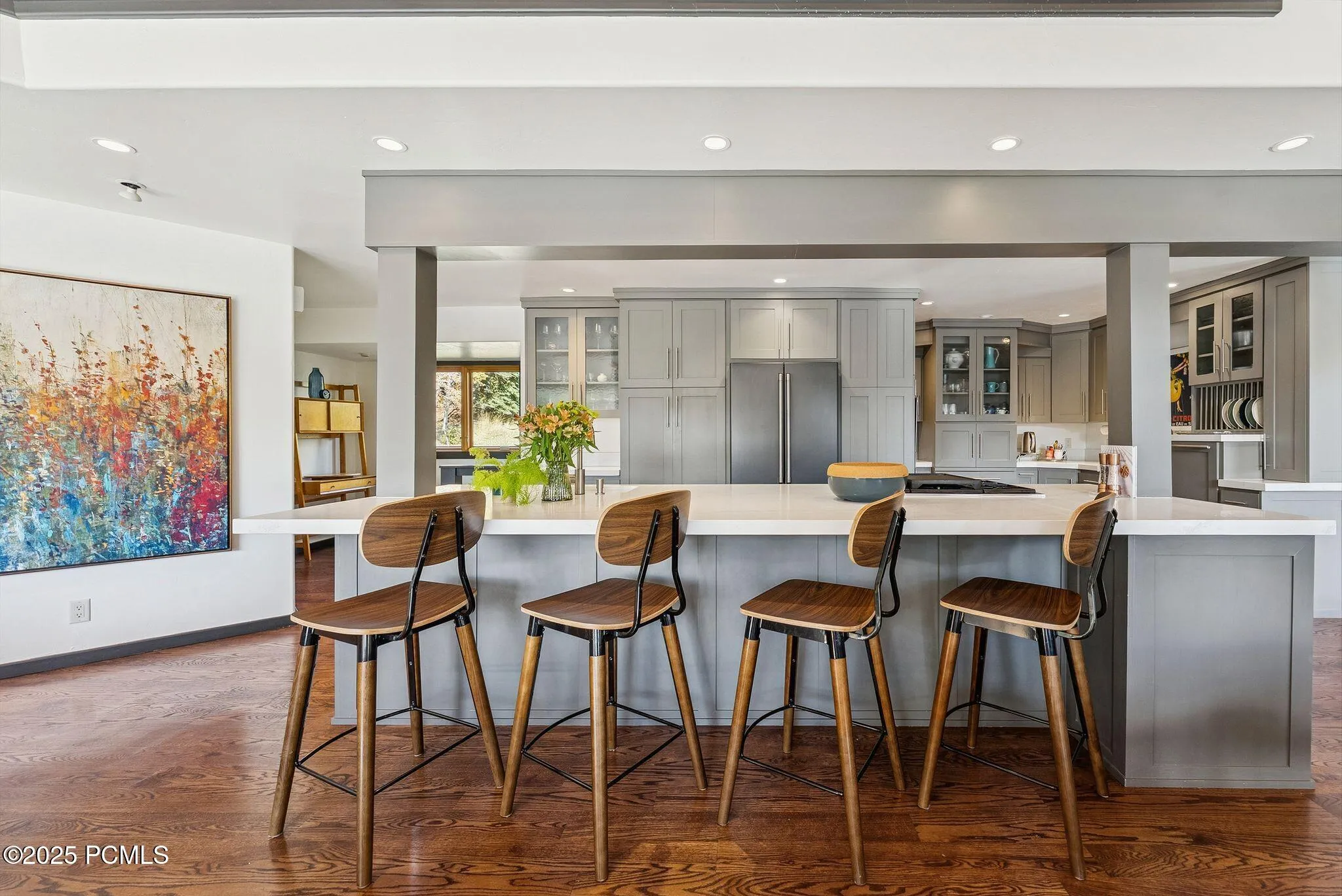 Tucked away in the quiet Ridgeview enclave of Park Meadows, 3065 Oak Rim Lane captures the essence of Park City living — panoramic mountain views, thoughtful design, and effortless comfort. Perched on a south-facing lot overlooking Park City Mountain Resort and Deer Valley, this 4,100+ square-foot mountain-contemporary home blends timeless architecture with modern updates for an inviting retreat in every season.Step inside to a bright, open great room where soaring ceilings and expansive windows frame breathtaking vistas of the surrounding peaks. The gourmet kitchen, recently remodeled with premium appliances, quartz counters, and warm wood finishes, opens seamlessly to the dining area and fireside living room — the perfect gathering space after a day on the slopes or trails.The primary suite offers peaceful mountain views, a spa-inspired bath, and private deck access. Three additional bedrooms, a cozy den, and a flexible bonus room provide ample space for family and guests. Every detail — from the custom cabinetry to the stone fireplaces — reflects craftsmanship and quality.Designed for an indoor-outdoor lifestyle, the home features an expansive wraparound deck, a private hot tub, and intimate sitting areas ideal for stargazing or apres-ski evenings. The two-car garage and workshop provide functionality and storage for mountain gear, while the 0.32-acre lot ensures privacy without sacrificing convenience.Located just minutes from Park City’s historic Main Street, world-class ski resorts, and scenic hiking and biking trails, this home offers the perfect balance of serenity and accessibility. Whether as a full-time residence or a seasonal retreat, 3065 Oak Rim Lane delivers the quintessential Park City experience — sophisticated yet relaxed, modern yet warmly inviting.