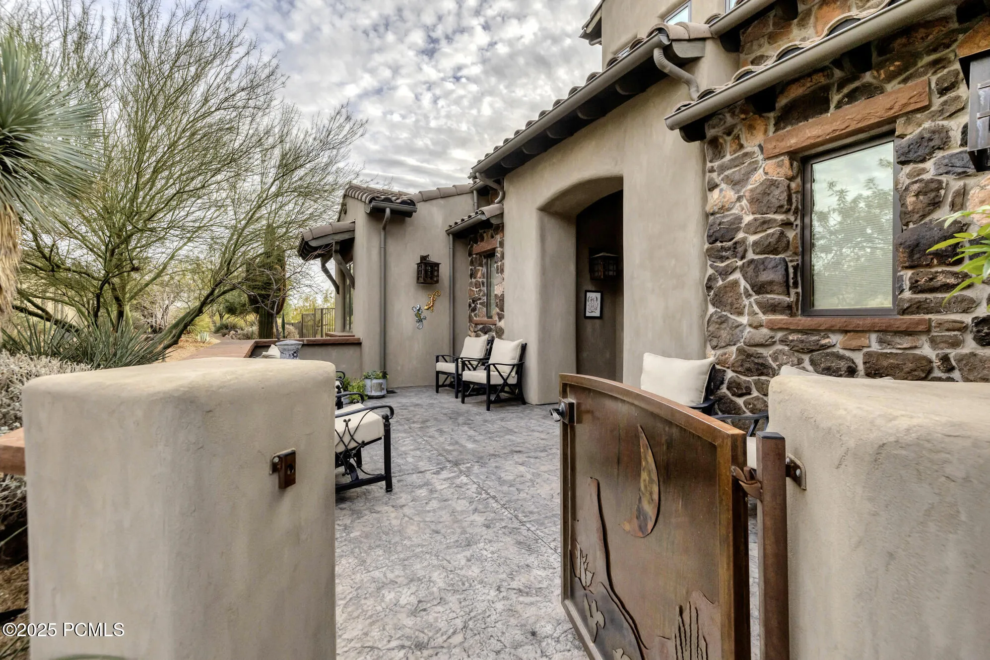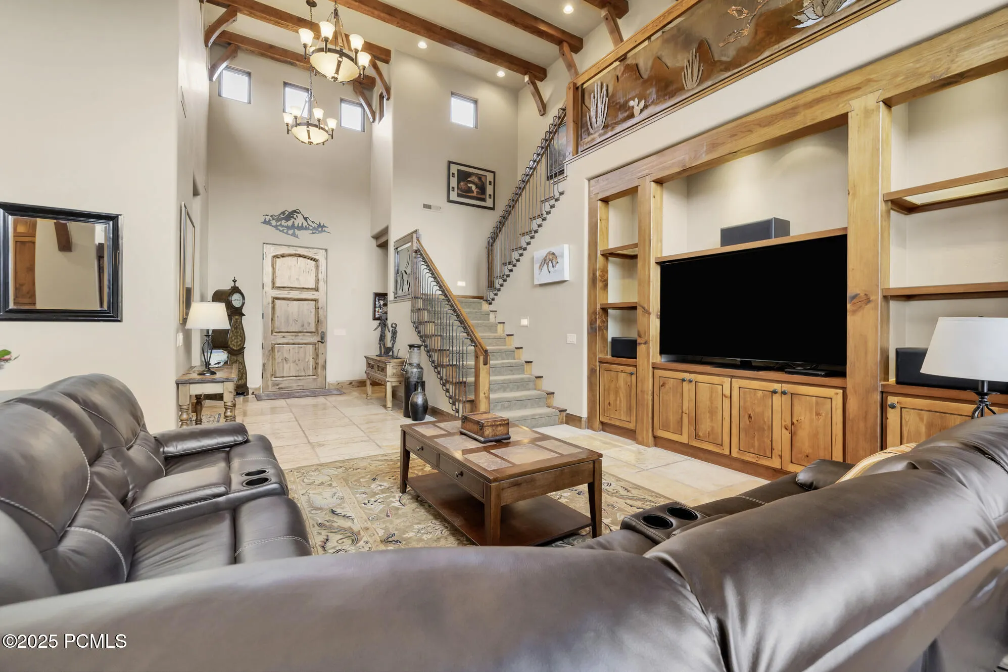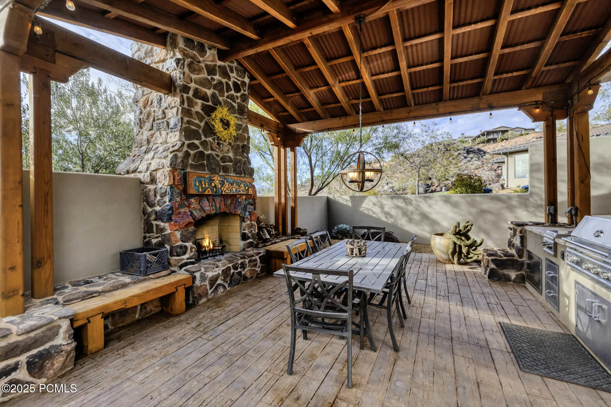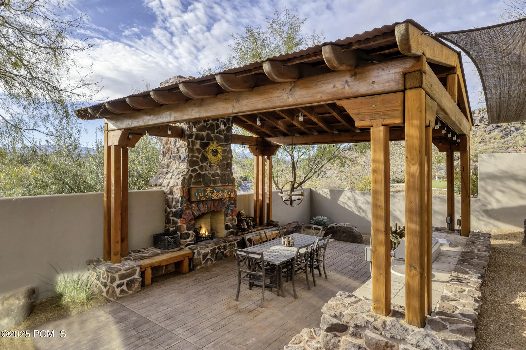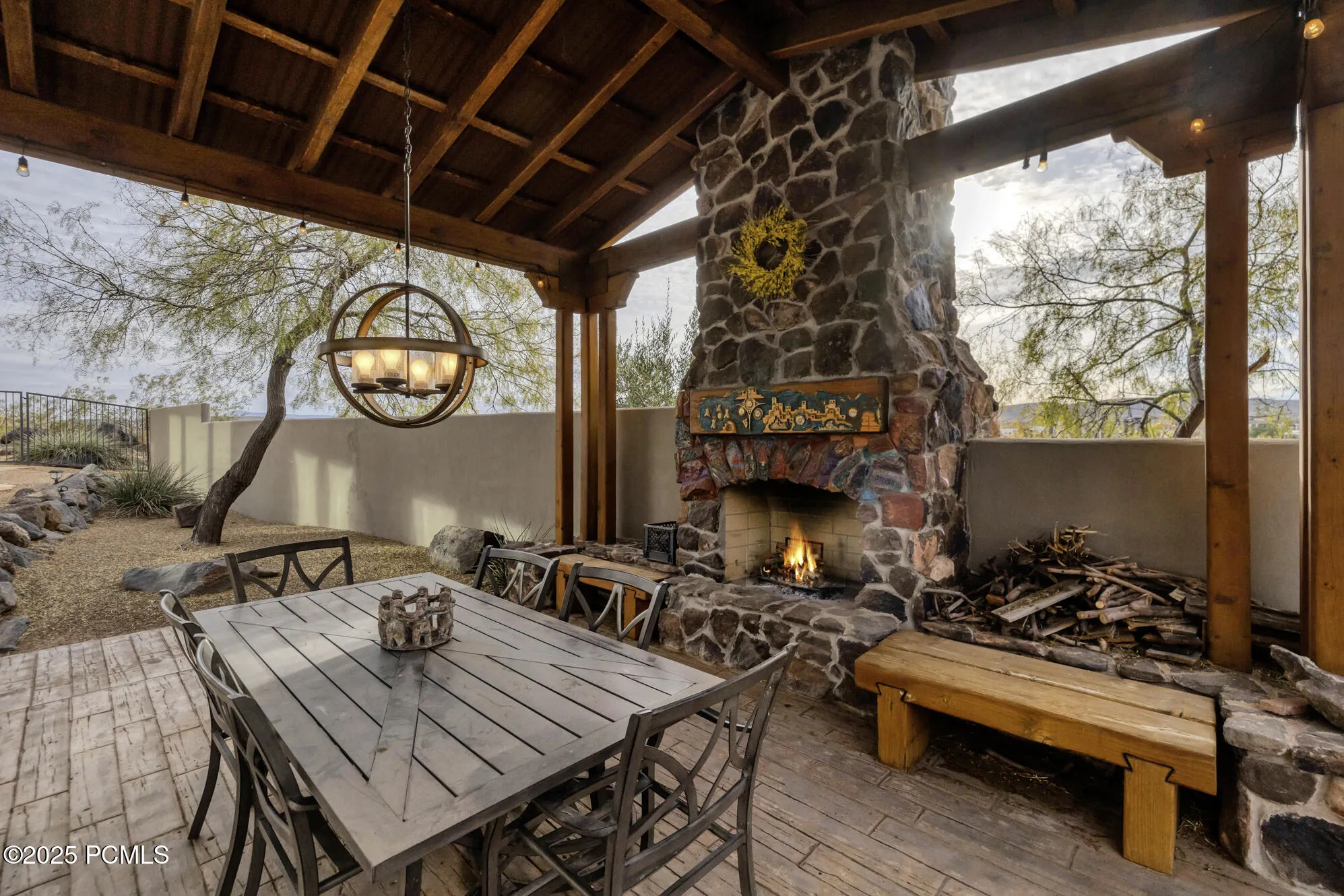Step into this extraordinary former Parade of Homes masterpiece and experience views from the moment you enter. Soaring 20-foot ceilings, custom wood beams, and artistic ironwork create a dramatic welcome that sets the tone for this one-of-a-kind luxury residence.The gourmet kitchen is designed for both beauty and performance, featuring Wolf and Sub-Zero appliances, custom cabinetry, and elegant finishes throughout. A fully custom lighting package, inside and out, enhances every space with warmth and ambiance.Designed for relaxation and effortless entertaining, the serene back patio offers a private outdoor haven complete with a Cowboy kitchen, built-in BBQ, refrigerator, and a massive rock fireplace–perfect for year-round gatherings. Unwind in the premium Bullfrog spa while taking in the tranquil surroundings.Additional highlights include a whole-house vacuum system, a whole-house entertainment system, and thoughtful craftsmanship at every turn. Located on a quiet cul-de-sac with minimal traffic, the home offers peace, privacy, and a retreat-like atmosphere.This is luxury living at its finest–where design, comfort, and breathtaking views come together seamlessly.Exclusions: garage refrigerator; patio furniture All information provided as courtesy. Buyer advised to verify all information.