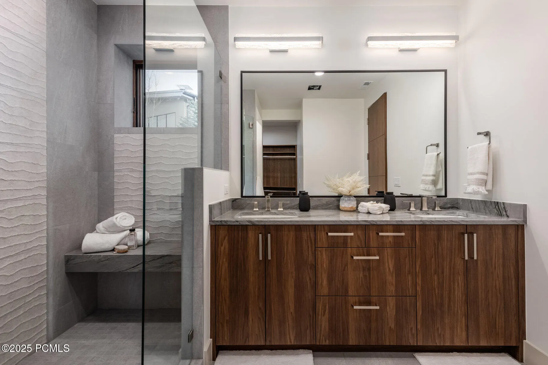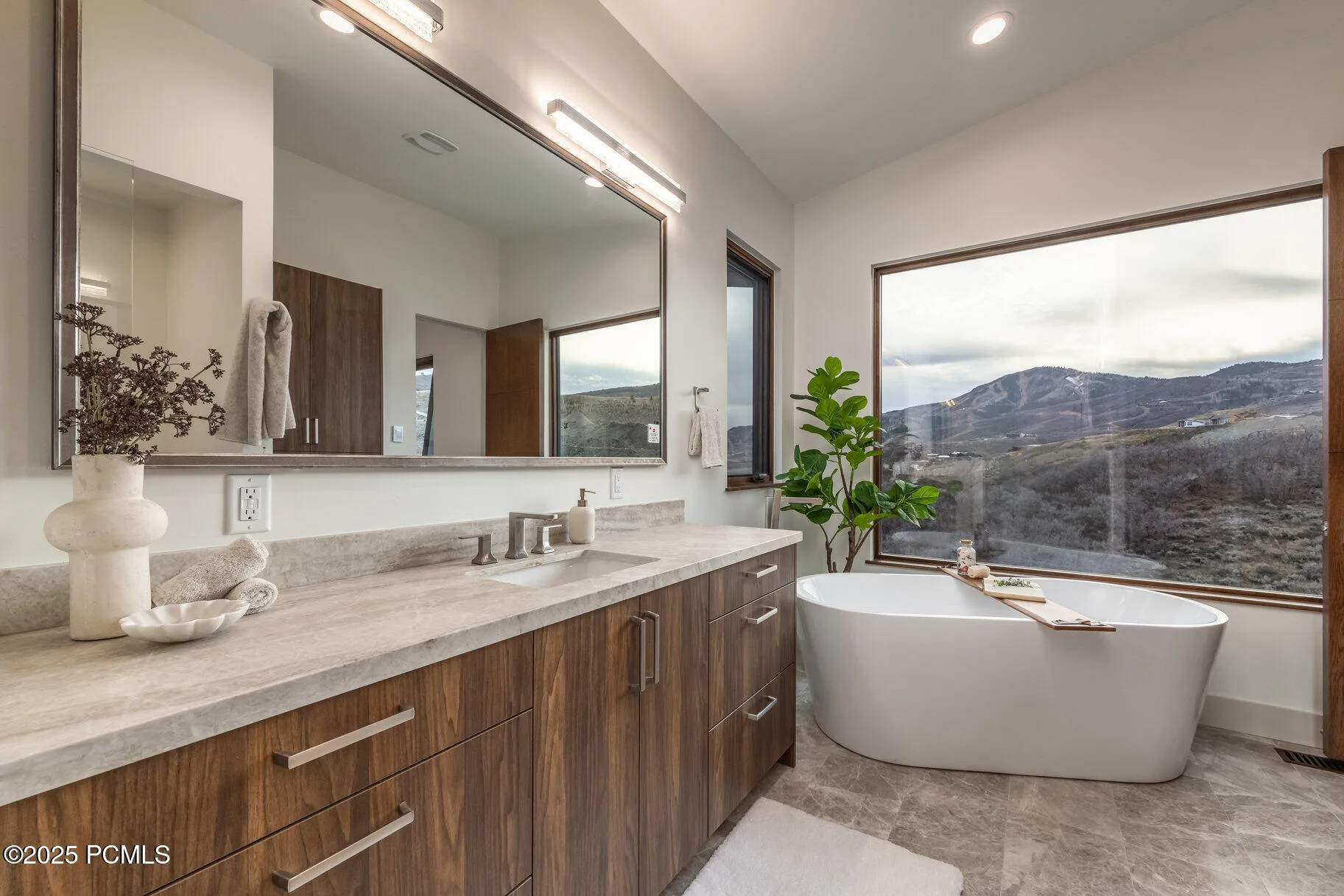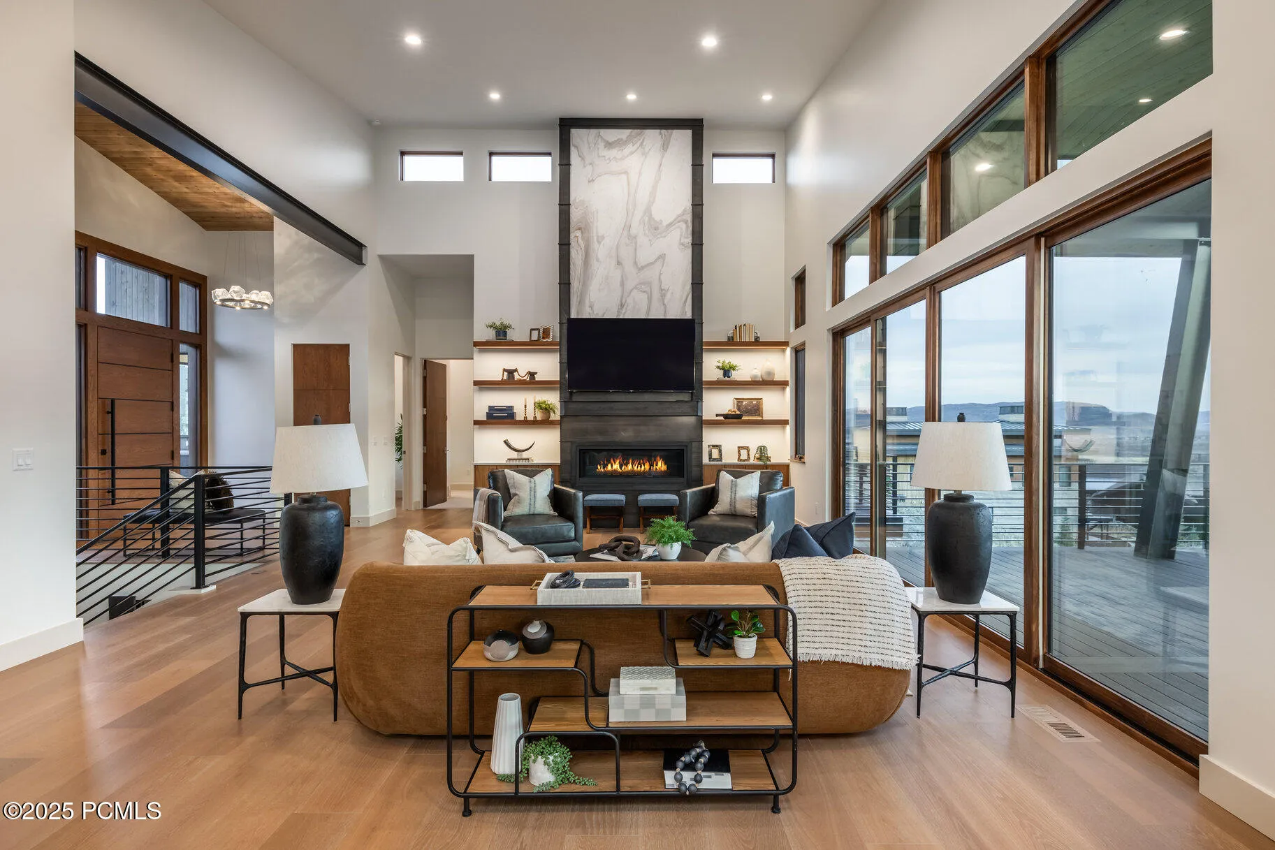 On a private ridge in the SkyRidge community of East Deer Valley, this exceptional custom home captures mountain living in the Park City area. Expansive windows frame the stunning Deer Valley(r) landscape, while warm, modern interiors blend luxury and ease. A place to gather, unwind, and create lasting memories. Recently completed, this stunning custom-built 4-bedroom + office, 4.5-bathroom residence offers a rare blend of timeless design and modern mountain living. Meticulously designed to highlight breathtaking views of Deer Valley Mountain Resort, every element of this home prioritizes comfort, quality, and connection to the outdoors. The main level welcomes you with a spacious great room centered around a striking marble and metal fireplace surrounded by custom shelving, flowing seamlessly into a chef’s kitchen outfitted with custom cabinetry, leathered granite countertops, and a walk-in pantry. Expansive windows capture sweeping mountain vistas, while a large deck offers the perfect space for outdoor dining, entertaining, or quiet retreat. The main-level primary suite features a limestone fireplace, spa-like bathroom with soaking tub, dual vanities, oversized glass shower, and a walk-in closet with its own laundry. Just off the suite, a private office offers flexibility for work, reading, or creative pursuits. Additional main floor features include a separate laundry room, mud room area, and a beautifully designed powder bath. On the lower level, a spacious bar and game room create an inviting space for entertaining. Three guest suites–each with its own en-suite bath–provide privacy and comfort for family and visitors. This level also includes ample storage, a guest laundry closet, and access to a private walk-out patio. As a SkyRidge resident, enjoy exclusive community amenities including a par-3 golf course, clubhouse with pools and fitness studio, equestrian center, cafe, bar, and on-demand shuttle service to the Deer Valley Gondola. Just minutes from the