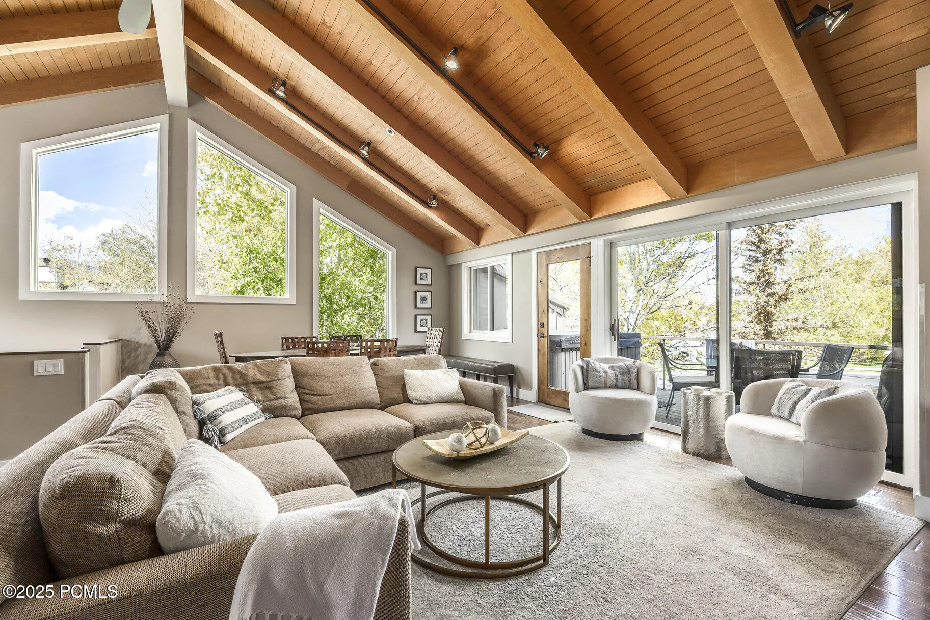 Welcome to this beautifully updated 3-bedroom, 3-bathroom townhome located in the serene Queen Esther Village in Lower Deer Valley. Offering 1,717 square feet of thoughtfully designed living space, this mountain retreat combines modern comfort with timeless alpine charm. Surrounded by mature aspen trees and expansive views of the Wasatch Range, the great room features vaulted tongue and groove wood ceilings, a cozy gas fireplace, and walls of windows that flood the space with natural light.Enjoy seamless indoor-outdoor living with an open floor plan and easy access to the private deck and hot tub–perfect for apres-ski relaxation or summer evenings under the stars. The spacious kitchen offers generous counter space ideal for prepping and entertaining. Beautifully upgraded finishes flow throughout the home, and the primary suite is plumbed for a steam shower to create your own spa-like escape. Both primary and upper level guest suite bathrooms have heated floors to keep those toes toasty during the winter months.Significant renovations were completed in 2025, including new siding, masonry, roof, decks and railing, windows and garage doors (coming soon), with landscaping enhancements scheduled for spring 2026. Additional features include a garage, owners’ lockout storage, and access to the Deer Valley shuttle, as well as steps away from trails for hiking and biking. You can also easily walk to Historic Main Street and Snow Park Village at Deer Valley.Whether you’re seeking a year-round residence, mountain getaway or investment property, this home offers refined living in an unbeatable location. Short term rentals are available.