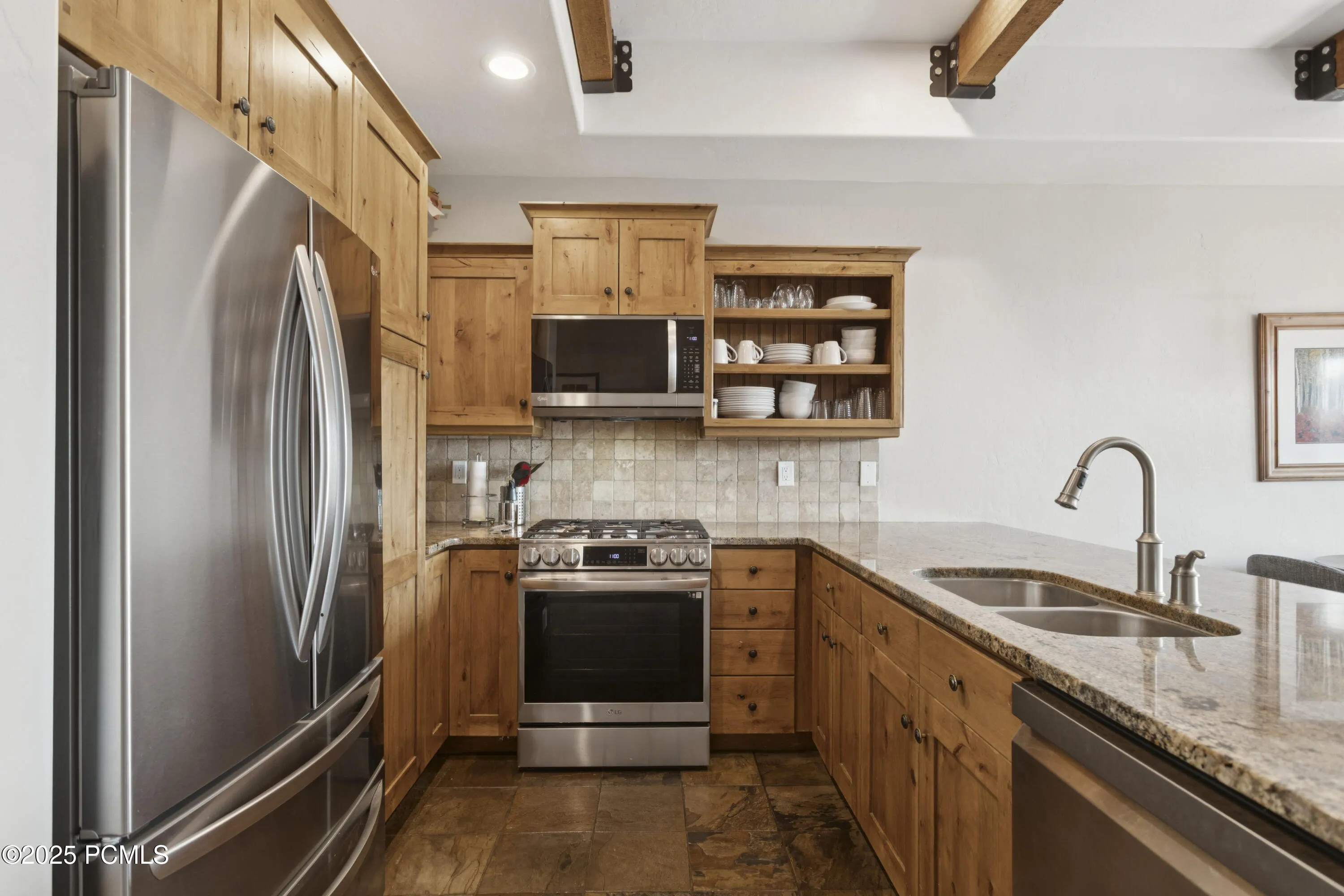 - Gas Range, Dishwasher, Refrigerator, Microwave, Freezer, Washer/Dryer Stacked, Oven