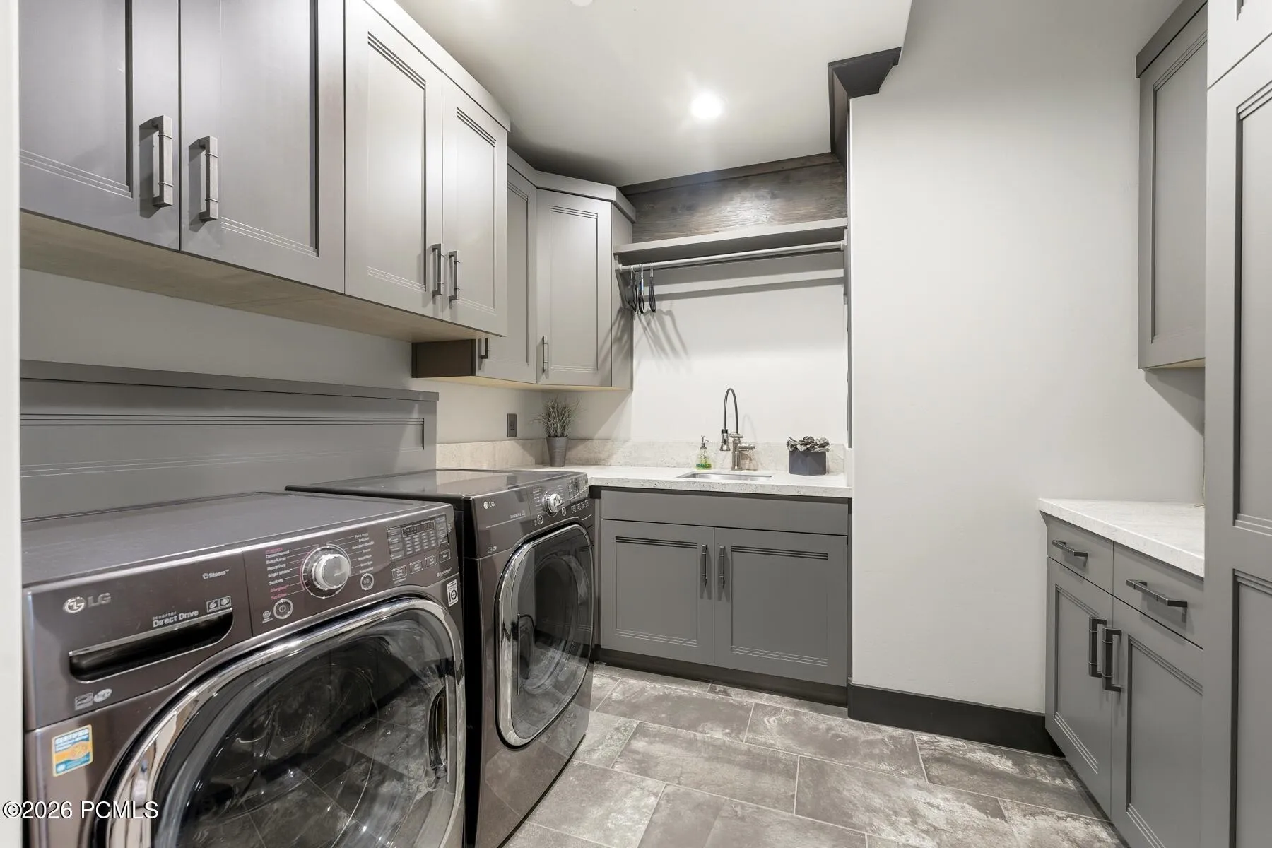 - Attached, Oversized, Heated Garage, Floor Drain, Sink