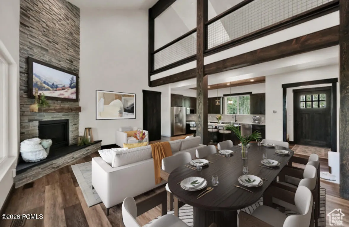 This stunning custom-built mountain home was thoughtfully designed with exceptional attention to detail throughout. Nestled among the trees in the highly sought-after upper Timber Lakes area, the home captures breathtaking, ever-changing mountain views through expansive windows and dramatic vaulted ceilings. Refined elegance blends seamlessly with the warmth and charm of mountain living, featuring high-end finishes from top to bottom and a striking fireplace that anchors the spacious great room with cozy sophistication. The desirable main-level living includes a beautifully appointed ensuite, while a paved, flat driveway provides effortless year-round access to the garage with abundant storage. Enjoy incredible wildlife and unmatched serenity while being just minutes from all the amenities of Heber City, Midway, and Park City offering world-class skiing, championship golf, endless outdoor recreation, and top-tier dining.