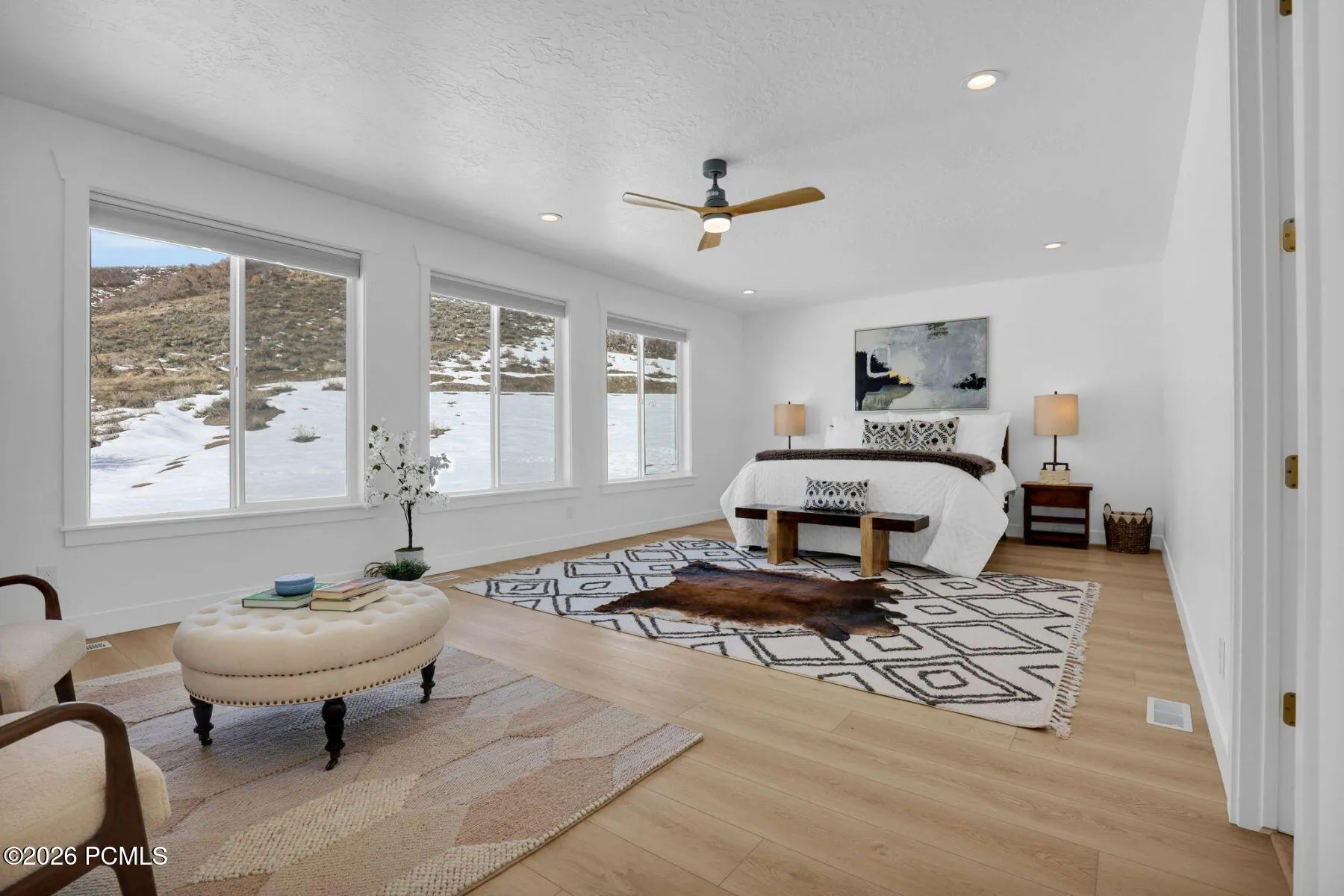 Welcome to this stunning, light-filled modern home in the highly desirable Scotch Fields subdivision. Completed in 2023, this thoughtfully upgraded residence offers seven spacious bedrooms and four beautifully appointed bathrooms, all designed to balance modern style with everyday comfort–plus spectacular panoramic views of the Wasatch Mountains.The home makes an immediate impression with an oversized main-level primary suite that feels like a true retreat. The central living area features soaring lofted ceilings that create an open, airy atmosphere perfect for both relaxing and entertaining. During construction, the fireplace was strategically relocated to an interior wall, opening the entire back of the home to the views. A dramatic 10′ x 6′ picture window perfectly frames the ever-changing mountain backdrop.Function meets lifestyle throughout. The three-car garage includes an extra-long 40-foot bay–ideal for vehicles, toys, and outdoor gear. Inside, enjoy a generously expanded mudroom, luxury vinyl plank flooring throughout most of the home, extra-large tile in the primary and front bathrooms, upgraded tile and countertops, and stylish modern fixtures that elevate the space without feeling overdone.Located in Scotch Fields, this home offers direct access to the Midway trail system and Wasatch State Park for year-round hiking and biking. World-class skiing in Historic Park City is just 15 minutes away, with the new Deer Valley East Base Area only 10 minutes from your door. Fly fishing, golf, and endless outdoor recreation are all close by.Modern, welcoming, and perfectly positioned–this home delivers the mountain lifestyle you’ve been looking for. Schedule your private showing today.The home was staged for photos and is no longer staged.