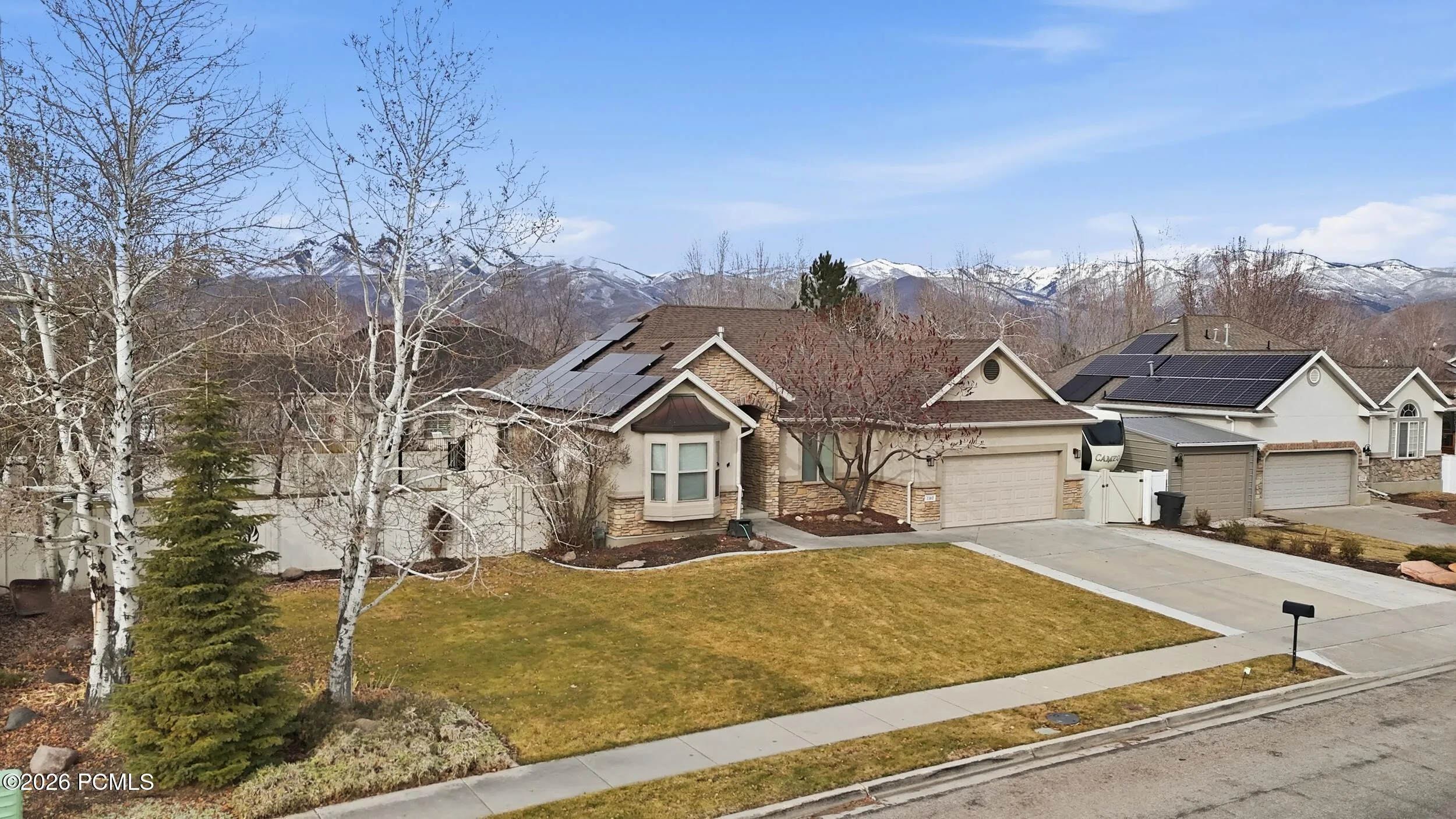 Beautifully updated 5-bedroom, 3-bathroom home in an established Heber neighborhood with convenient access to schools, parks, and downtown. The open great room with vaulted ceilings creates a bright and inviting space for everyday living and entertaining. The kitchen features granite countertops and new flooring, and the primary bathroom has just been fully remodeled. Updated lighting fixtures throughout add a fresh, modern feel. Enjoy the fully fenced backyard with mature landscaping, garden boxes, a seasonal covered deck with outdoor lighting, brick storage shed, RV parking, and a basketball standard. Major upgrades include a brand-new roof (2025), professionally installed permanent holiday lighting controlled by an app, and solar panels that significantly reduce the electric bill. The purchase price includes paying off the solar system, providing immediate energy savings. Move-in ready with space, updates, and efficiency in a great Heber location. Buyer to verify all information. Square footage figures are provided as a courtesy estimate only. Buyer is advised to obtain an independent measurement.