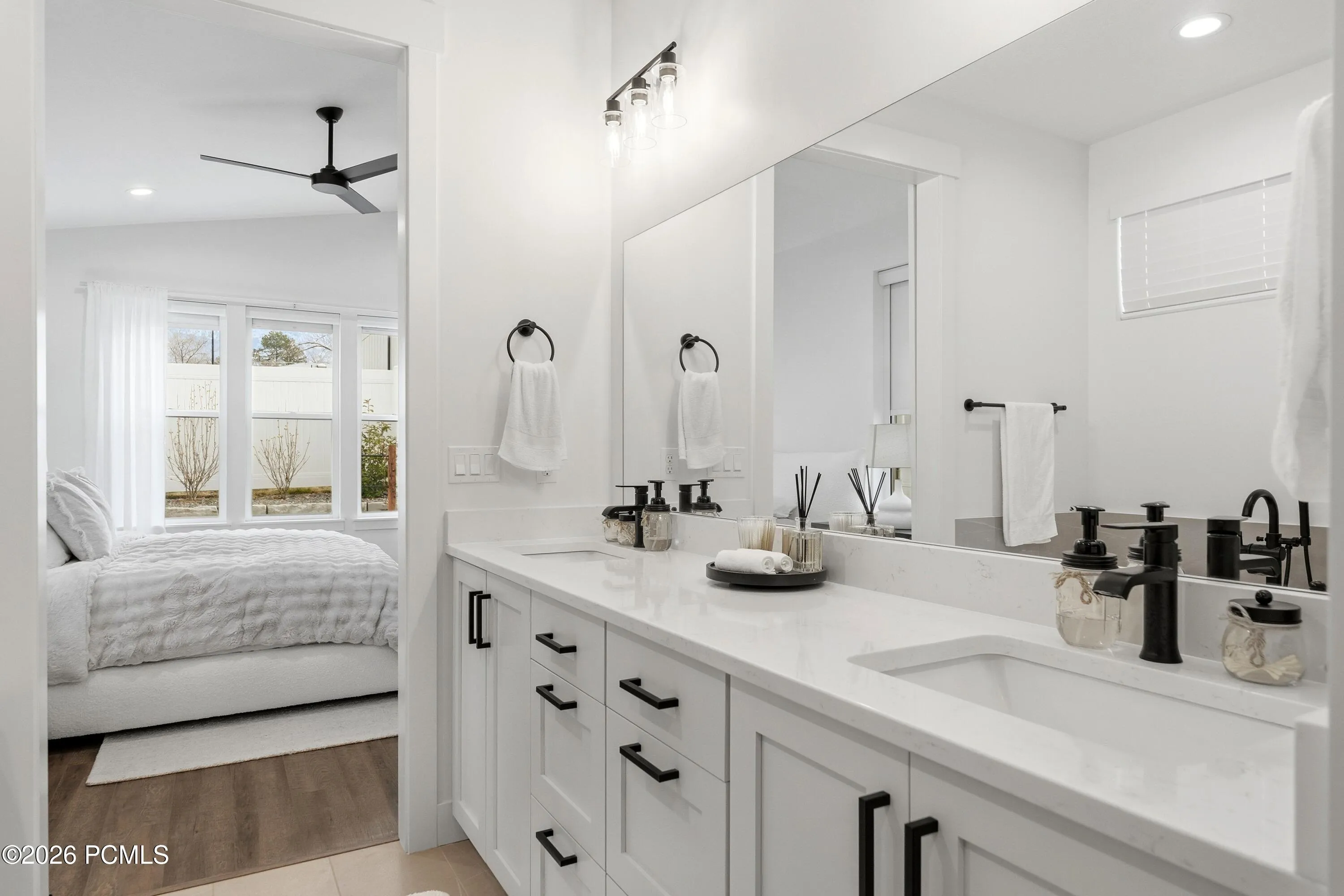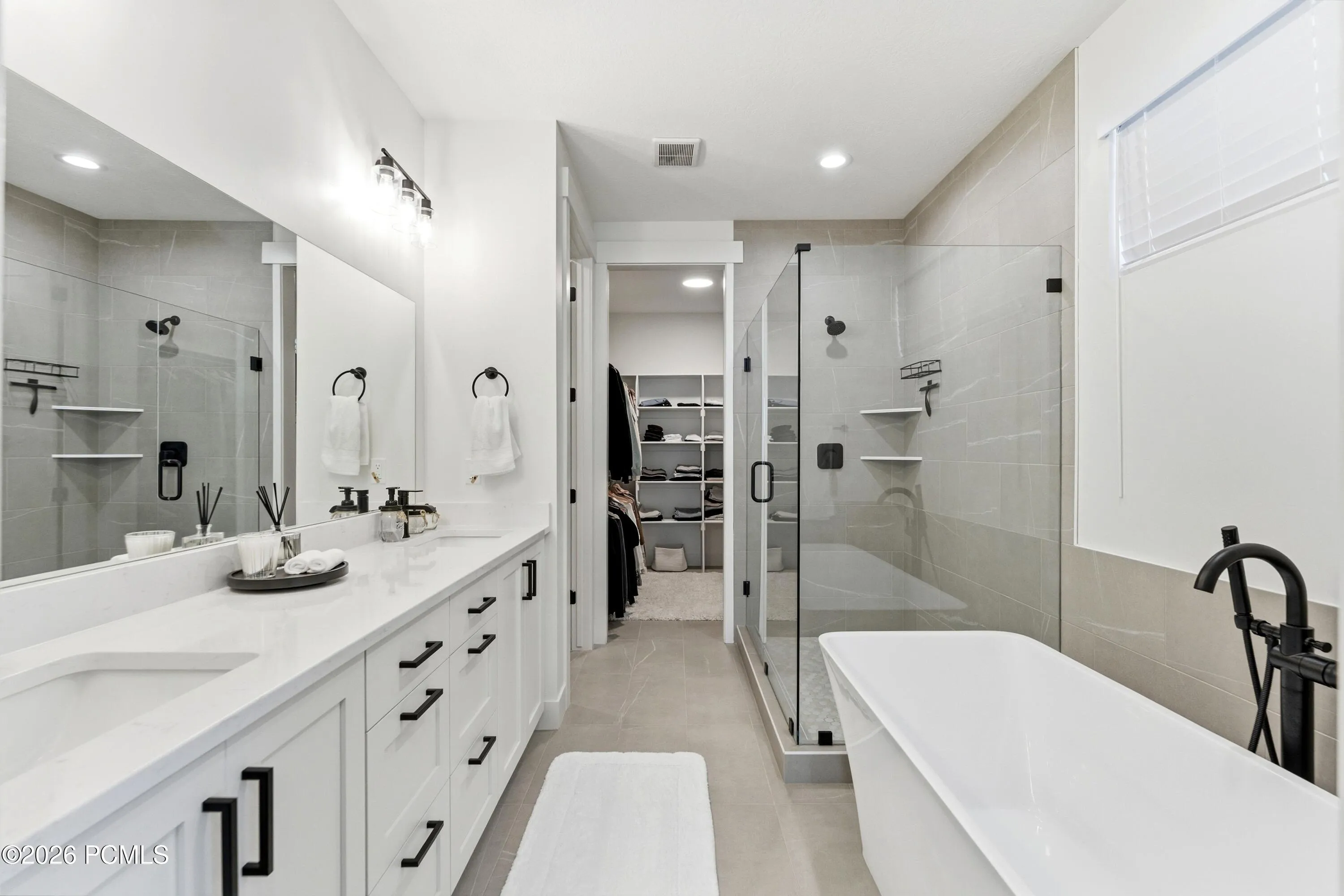 Welcome to 8569 Round Stone Cove , a 2024-built contemporary retreat in the heart of Sandy, minutes from World Class Ski destinations. Tucked into a quiet cul-de-sac, this light-filled, thoughtfully designed home offers the perfect blend of clean modern style and functional living. From the moment you step inside, you’ll appreciate the bright, open layout, soaring ceilings, and expansive windows that flood the home with natural light.The main floor features a spacious primary suite for true single-level living, complete with a beautifully appointed bath and generous closet space. The open-concept great room centers around a sleek fireplace and flows seamlessly into the designer kitchen–showcasing white cabinetry, quartz countertops, stainless steel appliances, a large island with seating, and contemporary finishes throughout.Upstairs and down, the layout offers flexibility for family living, guests, or entertaining. The fully finished basement provides additional living space perfect for a media room, playroom, home gym, or guest quarters.Clean lines, modern railings, warm-toned flooring, and neutral finishes create a timeless aesthetic that feels both elevated and inviting. The exterior features fresh modern curb appeal, a covered front porch, and a spacious driveway with attached garage.Located in a desirable Sandy neighborhood with convenient access to parks, shopping, dining, and the Wasatch Mountains, this nearly new home delivers style, comfort, and move-in-ready ease.Why wait to build when you can move right in?