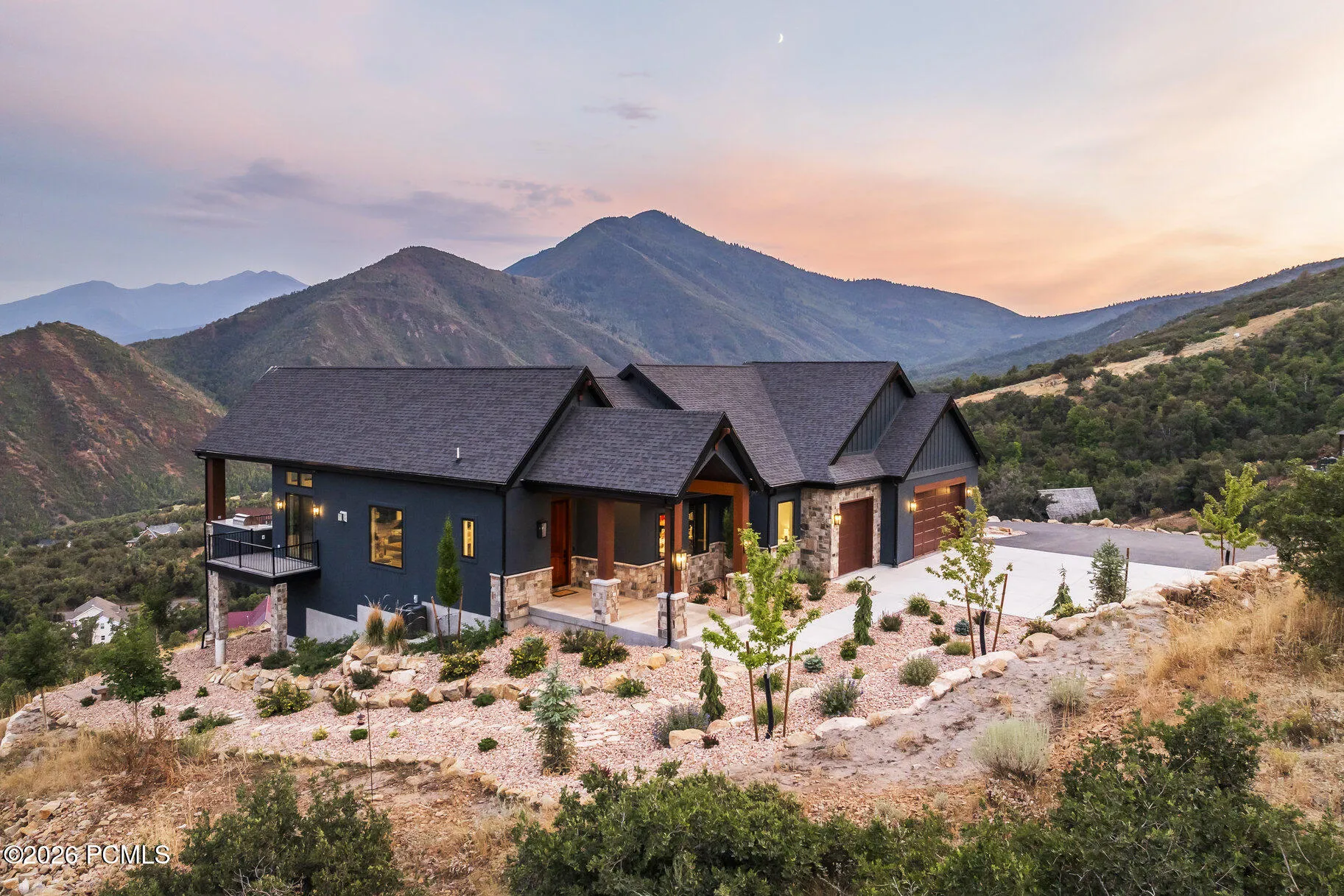 Located near the top of a gated community in Hobble Creek Canyon, this gorgeous home was built in 2022 and features breathtaking panoramic views and year-round mountain living. The views are so good that sitting on the deck and looking out at the mountains will actually bring peace to your life. They really are incredible! This home is about five minutes from the Hobble Creek Golf Course and it is close to all kinds of recreational opportunities for hiking, biking, and ATV adventures. It’s perfect for a primary residence or a vacation property. The roads are plowed in the winter and many families live up here all year. We are selling the home with the adjacent building lot located just below the home. You can build another home, hold it for an investment, sell it, or keep it untouched to preserve your view. The home features an open floor plan with vaulted ceilings, a spacious family room anchored by a fireplace, and a chef’s kitchen with quartz countertops, an expansive island, and a bright dining nook framed by sweeping canyon views. The primary suite is really big with a luxurious bath and a huge oversized walk-in closet, while the second bedroom can double as a stylish office with built-ins. The family room and the primary suite open out to a large deck with a built-in outdoor BBQ. The home also has an unfinished basement that offers lots of potential for future expansion. Come up and experience Hobble Creek Canyon. You will never regret it. Did I mention how good the views are!!