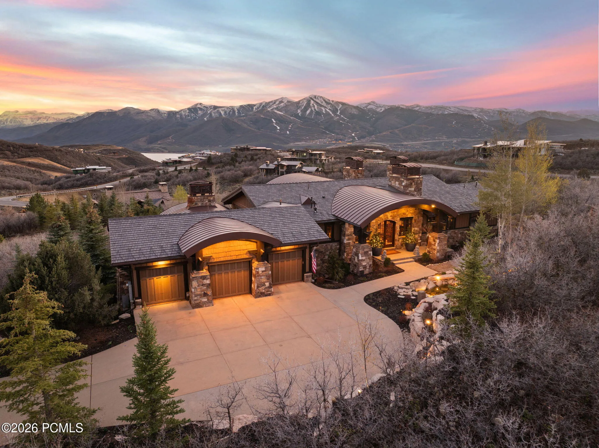 Experience breathtaking, unobstructed views of Deer Valley, Mount Timpanogos, Jordanelle Reservoir, and the Mark O’Meara Championship Golf Course from this exceptional 1.88 acre estate in Tuhaye. One of the few true estate-sized parcels, it borders open space on two sides, offering rare privacy and a dramatic natural backdrop.This 7,726 square foot, 7-bedroom, 8-bathroom residence blends contemporary design with mountain elegance, creating a warm and inviting setting for both entertaining and everyday living. A heated driveway and motor court lead to a striking boulder waterfall with a wrought iron bear sculpture, setting the tone for the craftsmanship found throughout.Inside, floor-to-ceiling windows capture sweeping views and fill the home with natural light. The great room features a grand stone fireplace, soaring wood-beamed copper painted barrel ceiling. The chef’s kitchen includes Wolf and Sub-Zero appliances, dual dishwashers, a large island, opening to an expansive deck with a fireplace, fire bowls, built-in BBQ, and multiple gathering areas.The main-level primary suite offers a private retreat with its own fireplace, deck access, and a spa-like bath with heated floors, steam shower, and soaking tub. The lower level is designed for entertaining with a family room, game area, kitchenette, wine cellar, and theater. 5 ensuite guest bedrooms provide comfort and privacy.Outdoor living includes a saltwater hot tub, firepit, turf lawn, stone paths, and a putting green. $200,000 Talisker Club membership deposit is included, offering access to golf, skiing, dining, spa, and year-round recreation.