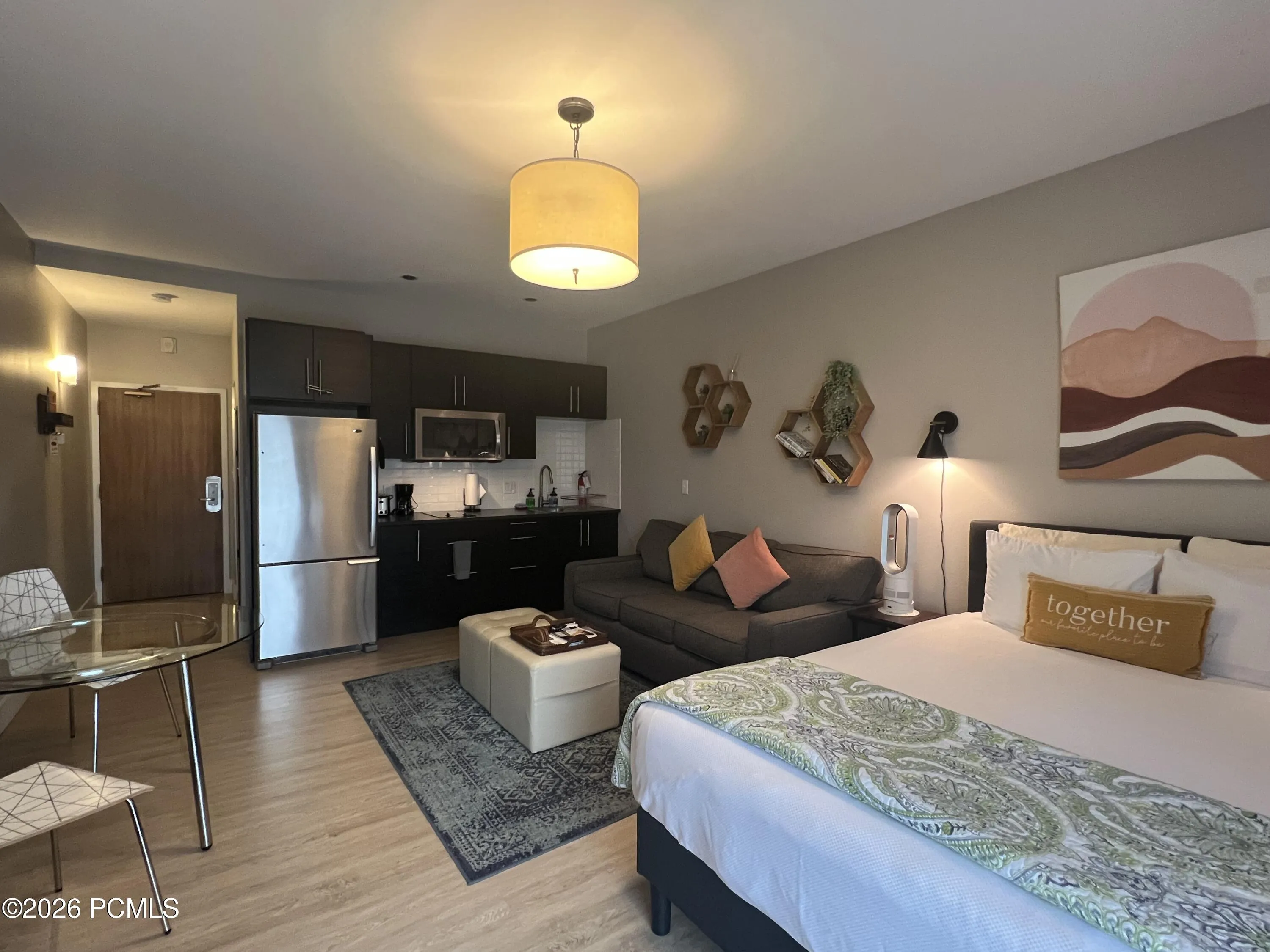 A rare opportunity for a low-maintenance mountain getaway with proven income potential in one of Park City’s most desirable communities. This unit has been thoughtfully remodeled with spacious sleeping area, a full kitchen, stainless appliances, modern bathroom, and in-unit washer/dryer. A guest favorite! Enjoy mountain and trail views from the private balcony and direct access to the Rail Trail just outside your door. HOA covers all utilities, TV, and internet, and offers resort-style amenities including a year-round hot tub, seasonal pool, fire pit, EV charging, and 24-hour front desk. Located on the free bus route, steps from Silver Mountain Sports Club, restaurants, and world-class skiing.
